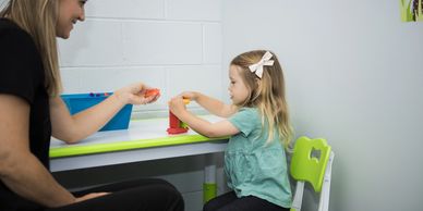 Our specialized sensory space hosts a variety of swings! Simply, swinging is fun, pleasurable, and regulating. Swinging can have an alerting or calming effect on our nervous system and can also increase muscle tone, balance, motor planning, and coordination.